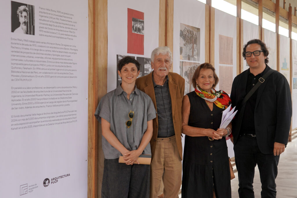 La sesión destacó además el valor del Fondo Documental VELLA, recientemente donado al Archivo de Arquitectura PUCP, que reúne planos, dibujos, perspectivas, fotografías y escritos, trazando una mirada amplia sobre su producción creativa. Su obra, diversa en escalas y tipologías —de equipamientos culturales a proyectos urbanos, de viviendas a edificios institucionales— constituye hoy un referente para la historia disciplinar del país y para nuevas generaciones de arquitectas y arquitectos.
